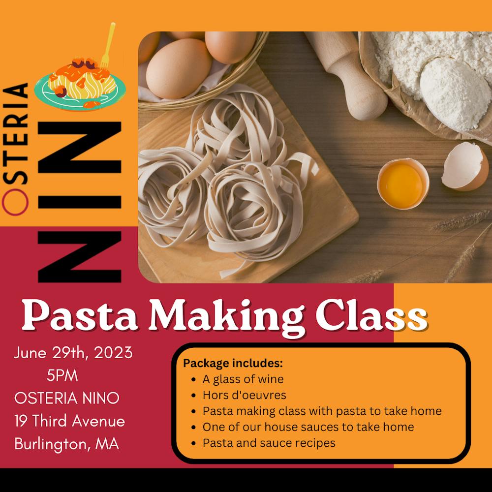 Ticket includes: class, glass of wine, hors d'oeuvres, pasta & house sauce to take home, & recipes!